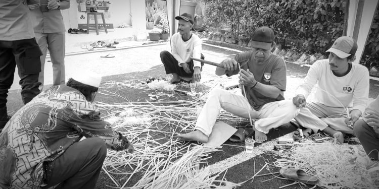 Potret Aktivitas Pelatihan Anyaman Bambu di Balai Desa | Dok. Waddedaily.com